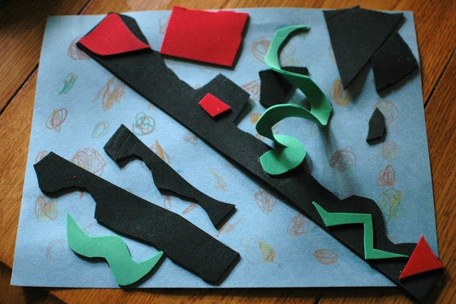 For this class, we had already looked at Matisses's artwork together. I made a PowerPoint that you can access for free (personal use only, thank you) via Dropbox, here it is. On the PowerPoint, I begin with two different artworks on the same slide before telling the children anything about Matisse. Which picture do you think Matisse created? I asked. Do you think the same artist created both pictures? They didn't, and were surprised to learn that Matisse had actually created both. This is one of the most fascinating parts of Matisse's art career to me. He began as a painter and then, after being diagnosed with cancer at 72, completely changed his media. I enjoy his paintings, but I love his cut-outs. They are uninhibited to me, created by someone who didn't have extra time to fiddle around. All of the children liked them too, and it was easy for them to see which shapes kept reoccurring in Matisse's artworks: